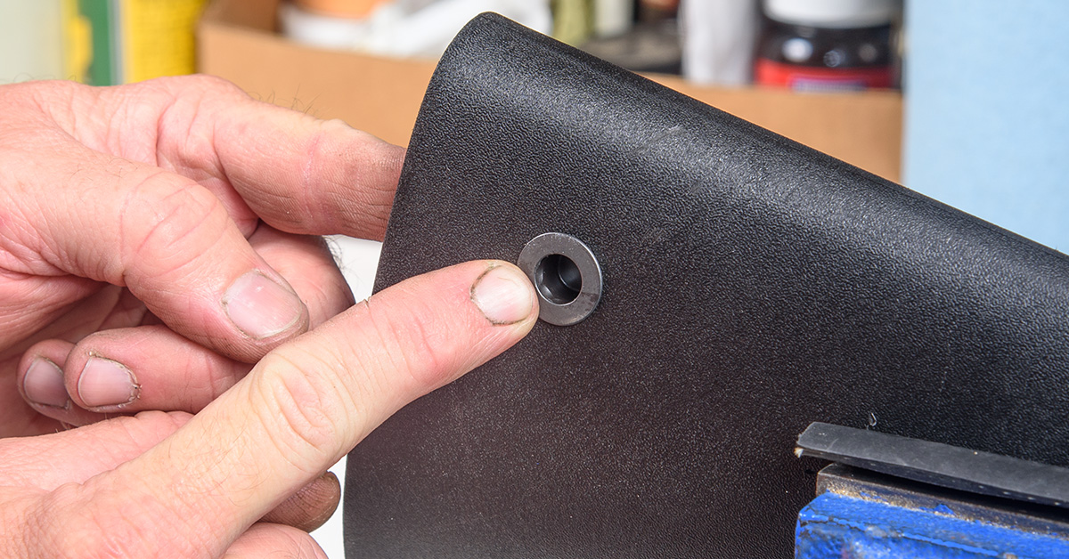 Examine the molding profile inside the stock. The Noveske flush-mount QD adapter requires a half-inch hole to be drilled through the polymer. We recommend placing the mount relatively high on the stock (on the opposite side of the cheek weld; right side for right-hand shooters, left side for left-hand shooters) but not so high as to interfere with the mounting screw boss.