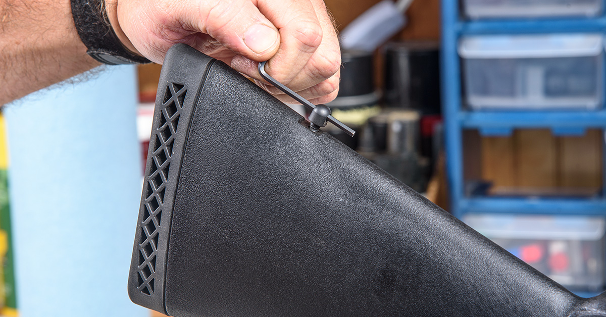 To finish, reinstall the buttplate. While not necessary, the factory sling swivel stud can be removed.