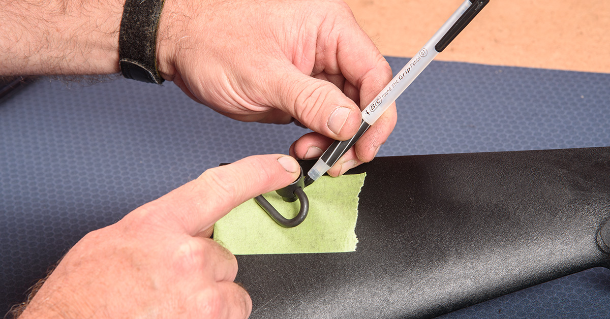 Once you've established the desired position of the mount, apply a piece of masking tape to the area and trace the base of the sling swivel onto the tape. This will be the location of the hole to be drilled.